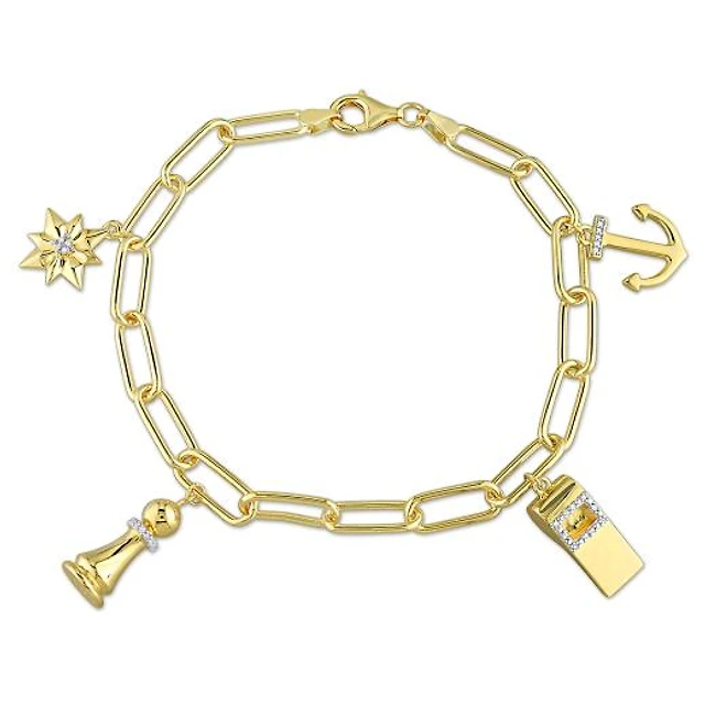 Julianna B Sterling Silver Yellow Plated Diamond Charm 9" Bracelet