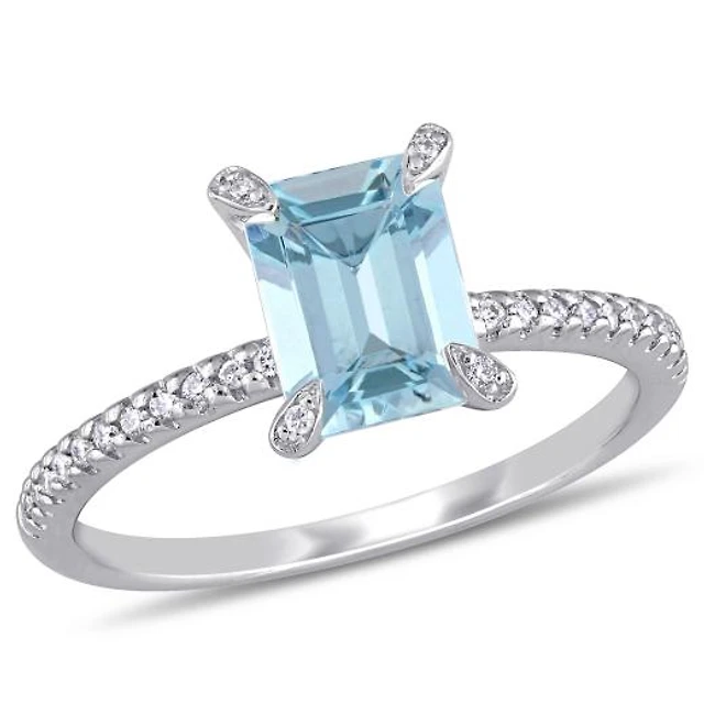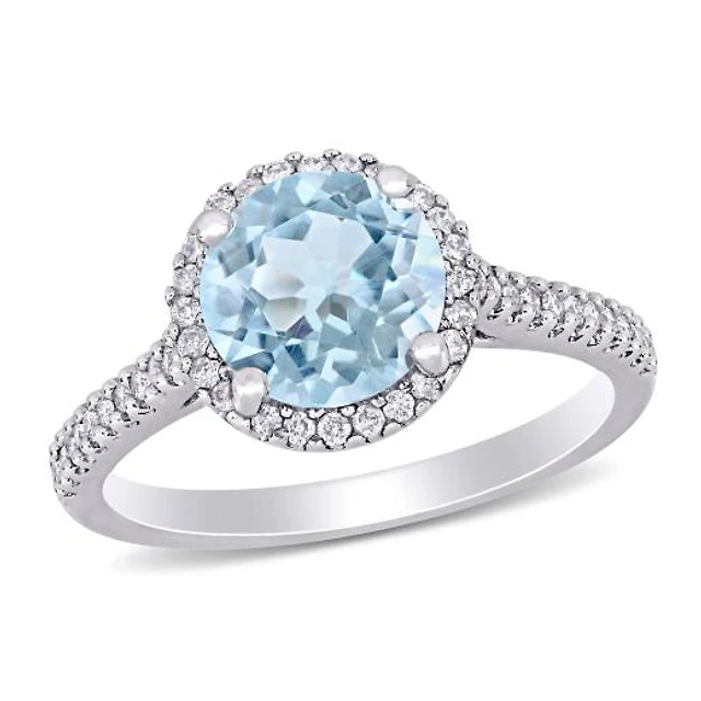 Julianna B 10K White Gold Aquamarine & White Topaz & Diamond Engagement Ring