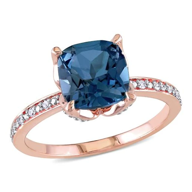 Julianna B Sterling Silver London & Sky Blue Topaz & 0.12CTW Diamond Ring