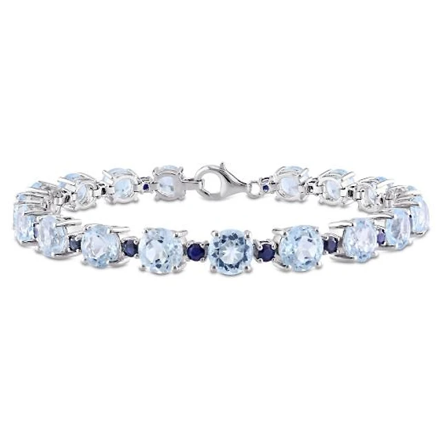 Julianna B Sterling Silver Blue Topaz & White Sapphire Halo Necklace
