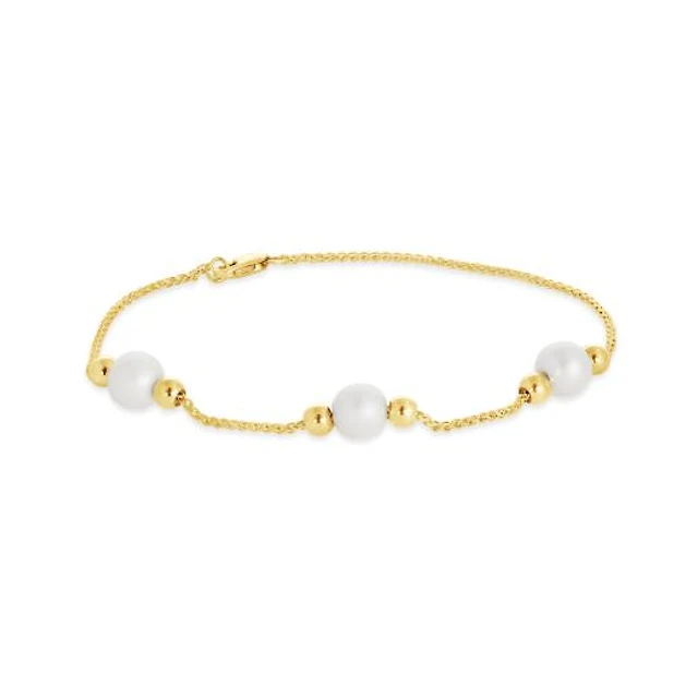 10K Yellow Gold Freshwater Pearl Diamond Earrings 5-6mm