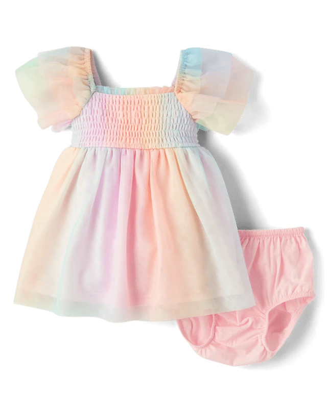 Baby Girls Rainbow Smocked Mesh Flutter Dress