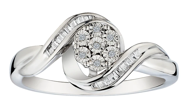.10 Carat of Lab Grown Diamonds "Hearts & Flower" Ring, Silver.....................NOW