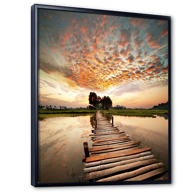 Makeshift Wooden Pier Over River Canvas Wall Art