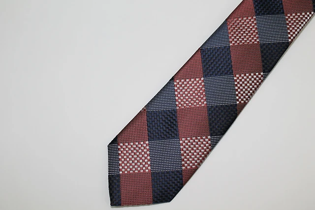 Pure Silk Large Plaid Tie - Blue / Burgundy