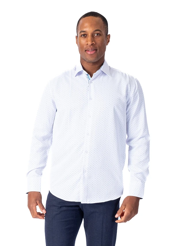 Modern Diamond Print "Blizzard" Sport Shirt - White