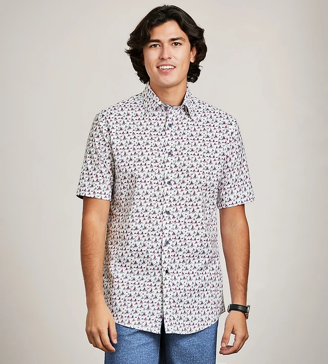 Slim Fit 360° Stretch Soft Touch Geo Print Jersey Dress Shirt