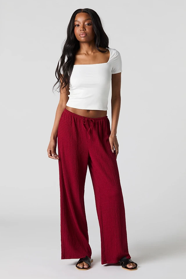 Textured Slit Wide Leg Pant