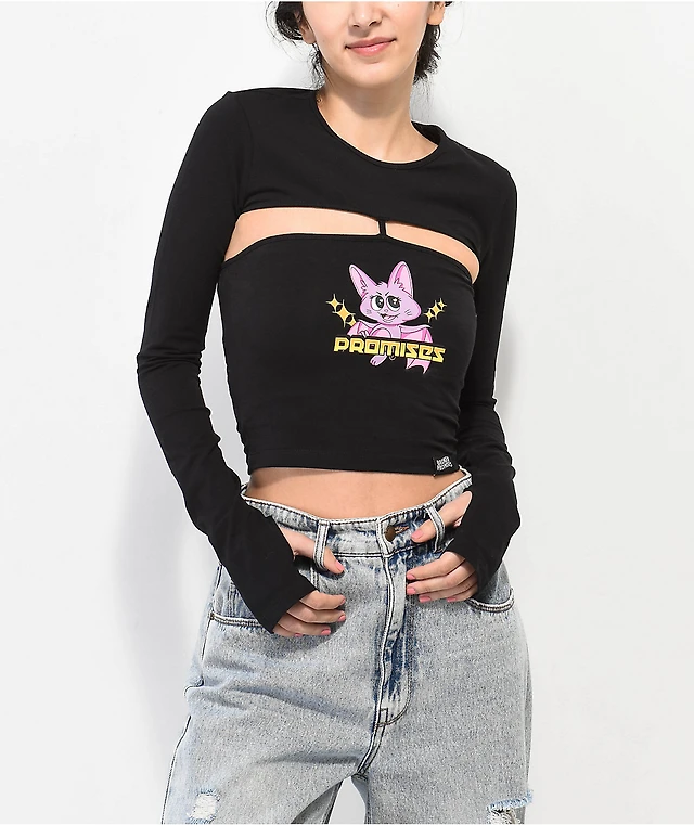 Petals by Petals and Peacocks Electric Lady Black & Grey Crop Long Sleeve T-Shirt