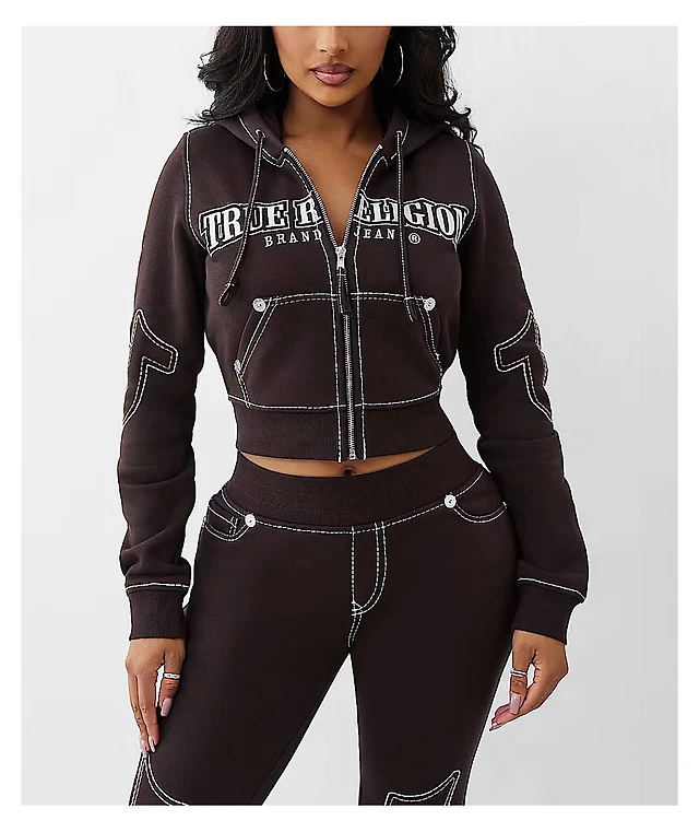 True Religion Cherry Shrunken Black Crop Zip Hoodie