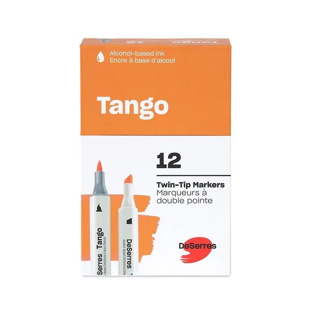 12-Pack Tango Double-Tip Markers Set, Assorted Colours - Chisel and Brush Tip